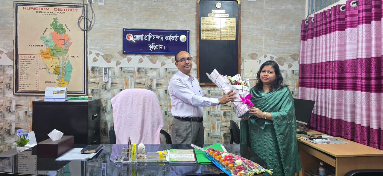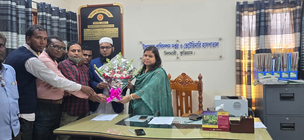আজ পূর্বাহ্নে উপজেলা প্রাণিসম্পদ দপ্তর ও ভেটেরিনারি হাসপাতাল, চিলমারী, কুড়িগ্রামে নবাগত উপজেলা প্রাণিসম্পদ অফিসার হিসাবে ডা. সাগরিকা কার্জ্জী যোগদান করেন। ৩৭তম বিসিএস (লাইভস্টক) ক্যাডারের মাধ্যমে নিয়োগপ্রাপ্ত হয়ে তিনি ভেটেরিনারি সার্জন পদে দীর্ঘ পাঁচ বছর যথাক্রমে রংপুরের তারাগঞ্জ ও জয়পুরহাটের ক্ষেতলাল উপজেলায় অত্যন্ত পেশাদারিত্বের সাথে দায়িত্ব পালন ও সিনিয়র স্কেলে (৬ষ্ঠ গ্রেড) পদোন্নতিপ্রাপ্ত হয়ে চিলমারীতে যোগদানকালে ভেটেরিনারি সার্জন ডা. মো. শাহীন আলমসহ দপ্তরের সকল সহকর্মী ফুলেল অভ্যর্থনা প্রদান করেন। যোগদানের পূর্বে তিনি কুড়িগ্রাম জেলার সুযোগ্য জেলা প্রাণিসম্পদ অফিসার মহোদয়ের সাথে সৌজন্য সাক্ষাতকালে চিলমারীর প্রাণিসম্পদ সেক্টরের উত্তরোত্তর সমৃদ্ধিতে সার্বিক সহযোগিতা ও পরামর্শ কামনা করেন।